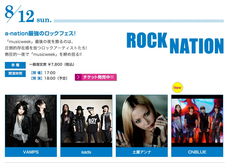 CNBLUE perform at ROCK NATION in Japan Aug.12 at 5:00PM